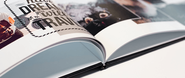 Fotoboek met vlakliggende pagina's die 180 graden open kunnen.